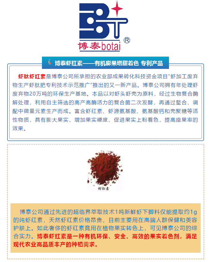 熱點‖博泰蝦紅素——有機膨果增甜著色 專利產(chǎn)品