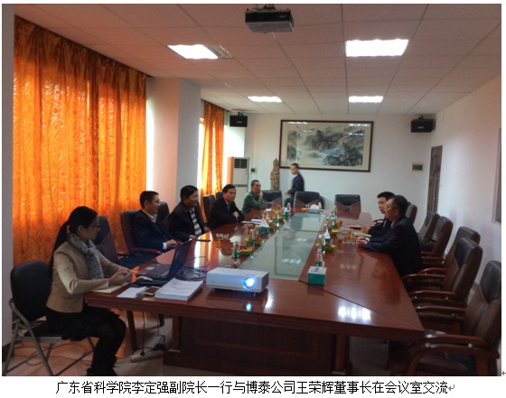 廣東省科學(xué)院李定強(qiáng)副院長(zhǎng)在湛江市科技局洪濤書(shū)記到我司商討省科學(xué)院與博泰開(kāi)展院企多領(lǐng)域合作的事宜